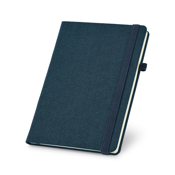 Caderno capa dura. Algodão cavas sintético. Com porta esferográfica e 96 folhas não pautadas cor marfim. Fornecido em embalagem de non-woven. 148 x 210 mm | Embalagem: 185 x 240 mm