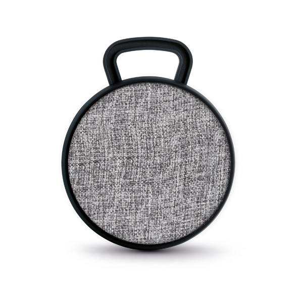 Caixa de som com microfone. ABS e tecido em poliéster. Com gancho e acabamento emborrachado. Transmissão por bluetooth. Com 3W/4?. Autonomia até 3 h. Função para atender chamadas, controle de volume e conexão à playlist do dispositivo móvel. Incluso cabo para carregamento. Fornecida em caixa presente. 90 x 40 mm | Caixa: 115 x 95 x 45 mm