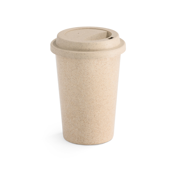 Copo para viagem. Fibra de bambu e PP. Com tampa. Capacidade até 450 ml. Food grade. 93 x 134 mm