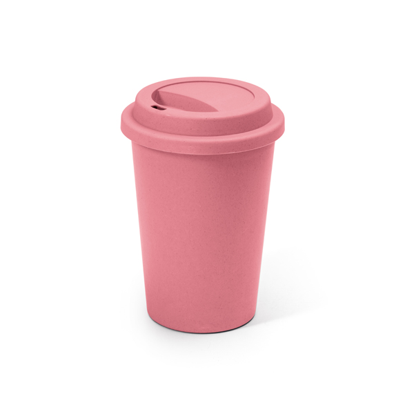 Copo para viagem. Fibra de bambu e PP. Com tampa. Capacidade até 450 ml. Food grade. 93 x 134 mm