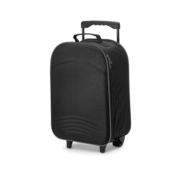 Mala de viagem dobrável. 600D e EVA. Com 2 rodas. Pega extensivel (altura da pega estendida até 310 mm). Parte frontal semi-rígida. Capacidade até 25 L. Peso: 1,15 kg. 315 x 510 x 180 mm