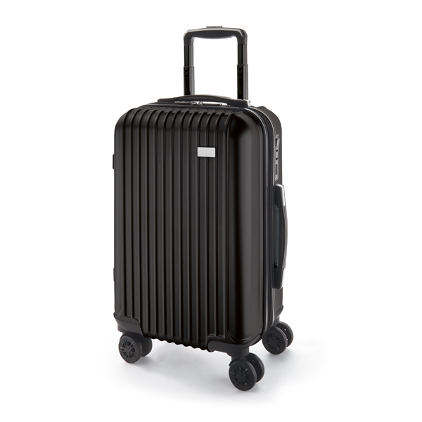 Mala de viagem executivo. ABS e PET. Interior forrado, com divisória. 4 rodas duplas giratórias. Pega extensível em alumínio, com mola (altura pega estendida: 335 mm). Fecho de segurança com senha. Placa metálica removível, para fácil gravação. Capacidade: 90 L. Peso: 4,20 kg. 500 x 775 x 290 mm | Placa: 60 x 30 mm