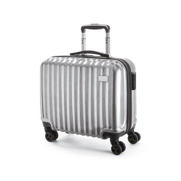 Mala para notebook. ABS e PC. Interior forrado e compartimento interior para notebook 15.6'. 4 rodas duplas giratórias. Pega extensível em alumínio, com mola (altura pega estendida: 610 mm). Fecho de segurança com senha. Placa metálica removível, para fácil gravação. Capacidade: 38 L. Peso: 2,75 kg. 440 x 430 x 240 mm | Placa: 50 x 30 mm