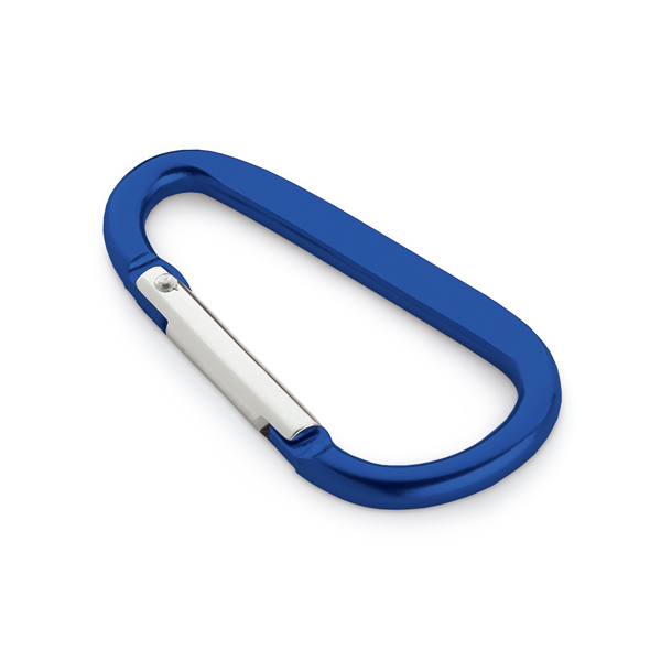 Mosquetão. Alumínio. Com área plana para gravação. 32 x 57 x 5 mm