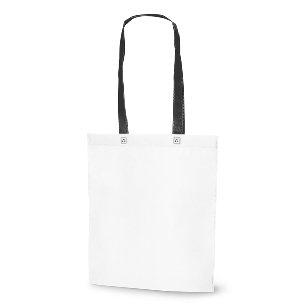 Sacola. Non-woven: 80 g/m². Termo-selado. Alças de 55 cm. 330 x 390 x 80 mm