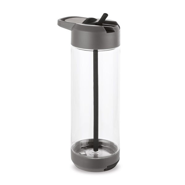 Squeeze. Tritan™. Com suporte para celular. Capacidade até 750 ml. Food grade. Caixa branca 94658 vendida opcionalmente. 75 x 222 mm